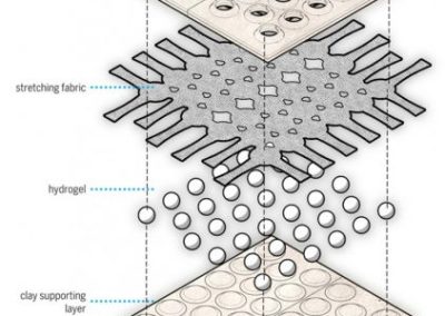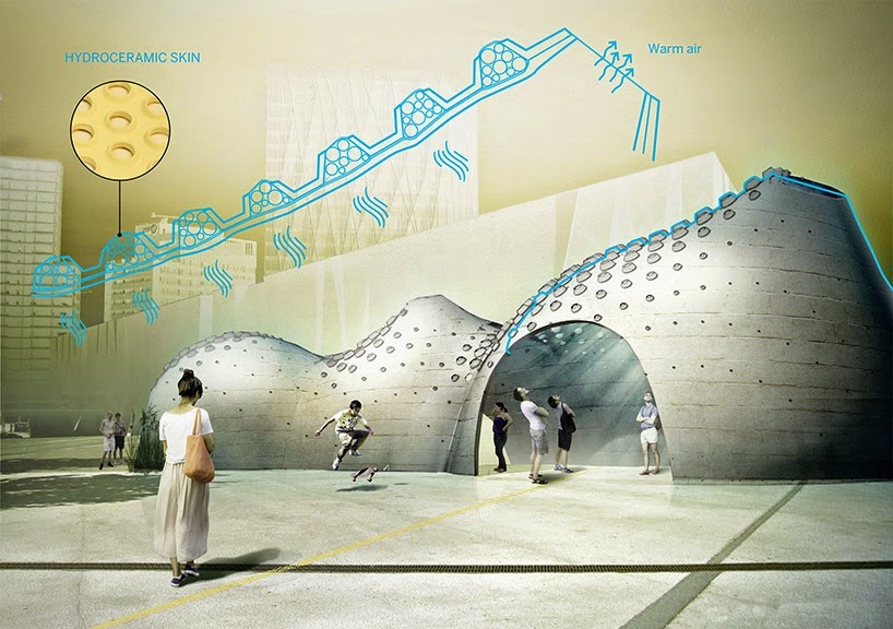 El Instituto de Arquitectura Avanzada de Cataluña (IAAC) ha creado un material que, aplicado sobre las paredes, hace las funciones del aire acondicionado. El material contiene pequeñas burbujas de hidrógeno (parecidas a canicas), capaces de retener 400 veces su volumen en agua. Esto les permite absorber humedad y evaporar su contenido para enfriar el ambiente, hasta en 6 grados centígrados.
